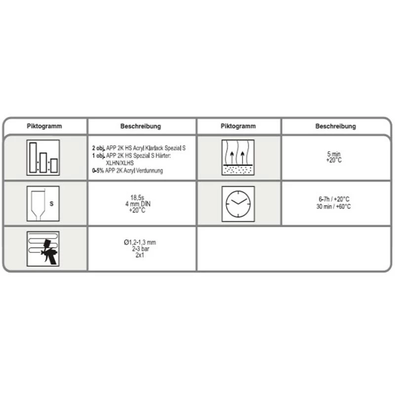 Hinweis! Ausschließlich die Härter APP 2K HS Spezial S Härter XLHN/XLHS und 2K Verdünner für Acryllacke verwenden.
