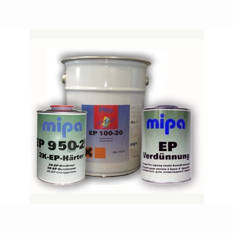 Mipa 2K-EP-Grundierfiller EP100-20 ist eine chromatfreie 2K-Zinkphosphat-Epoxidharz-Grundierung für Stahl, verzinkten Stahl, Aluminium, GFK und mineralische Untergründe.