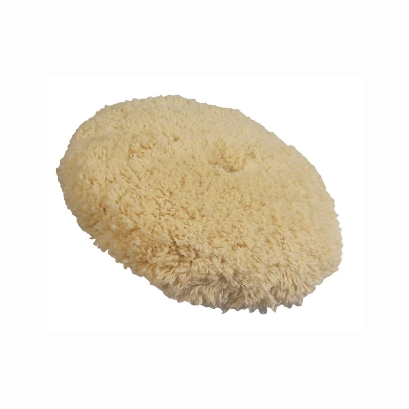 Polierfell zum Polieren von lackierten Oberflächen an Auto, Motorrad oder Boot. Polierlammfell aus natürlicher Schafswolle und auf fester und elastischer Grundlage mit Zentrierungsbohrung.
