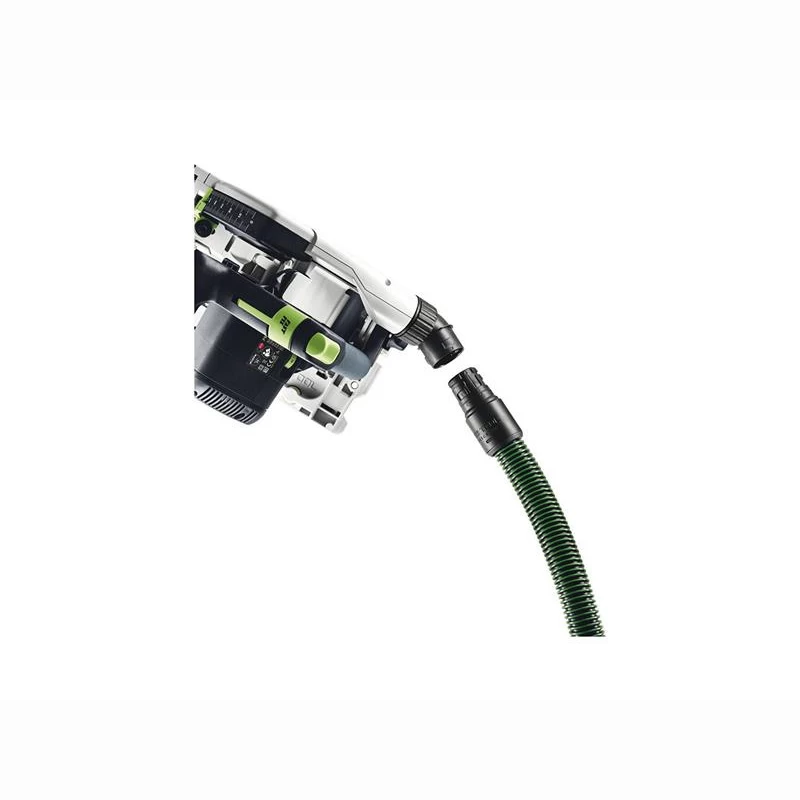 Der integrierte Bajonettverschluss verbindet die Anschlussmuffe des Saugschlauches sicher und schnell mit dem Absaugstutzen des Elektrowerkzeuges. Und ist ebenso schnell lösbar. Über den Zeitpunkt bestimmen Sie – und nicht der Zufall. Egal ob beim Sägen oder Schleifen, ob in der Werkstatt oder vor Ort. Für effizientes, sauberes und gesundheitsschonendes Arbeiten mit System. Staubfrei. für alle Elektrowerkzeuge mit D27 und D36 Flansch (alle Festool Elektrowerkzeuge) und Reinigungszubehör, speziell für die glatten Saugschläuche mit integriertem plug-itKabel, für werkzeugseitigen Anschluss (Elektrowerkzeuge oder Saugdüse), die sichere Verbindung zwischen Absaugmobil und Elektrowerkzeug Dank Bajonettverschluss