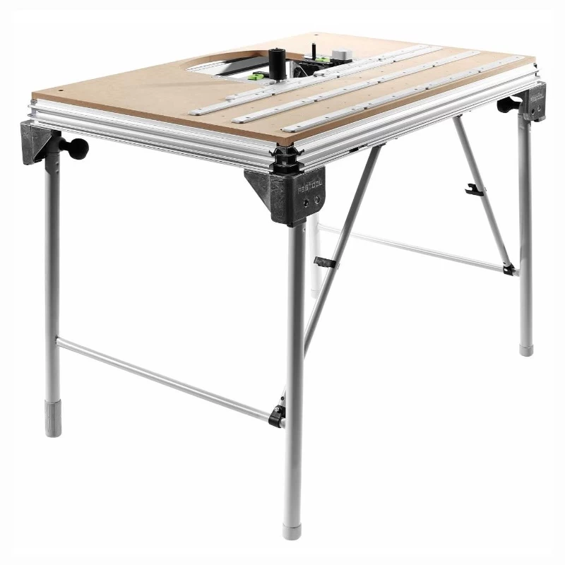 - Ermöglicht Schwenken der Maschine (0 – 47°) im Tisch und damit horizontale Auflage des Werkstückes beim Bekanten – für komfortable und sichere Führung auch großer Objekte