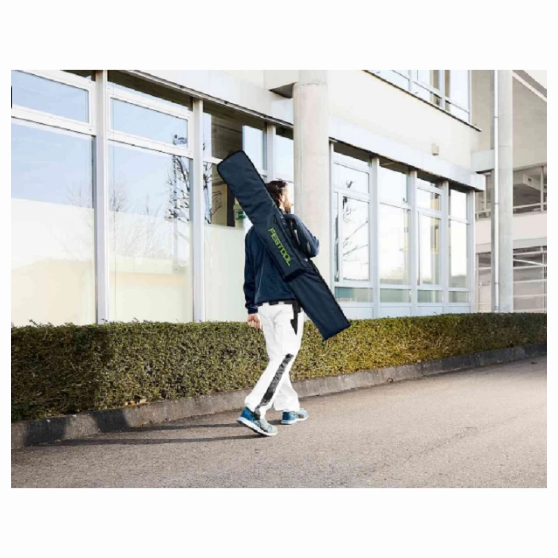 Mit der Führungsschienentasche werden Führungsschienen perfekt geschützt, transportiert und aufbewahrt. Die Taschen haben ein großes Hauptfach, in dem ein oder zwei Führungsschienen bis zu einer Länge von 1900 mm untergebracht werden können. Zusätzlich existiert eine weitere Tasche, in der Zubehör wie Verbinder, Schraubzwingen oder der Winkelanschlag FS-WA/90° Platz findet.