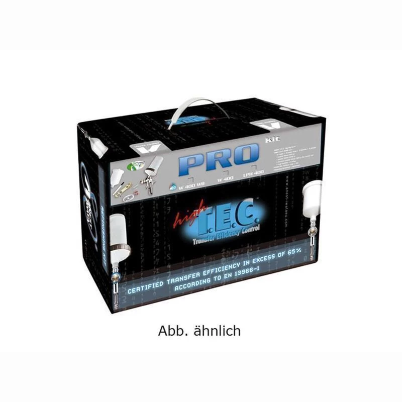 Lieferumfang ProKit: inkl. Fließbecher, Deckel u. Filter, sowie Pistolenschlüssel und Reinigungsbürste