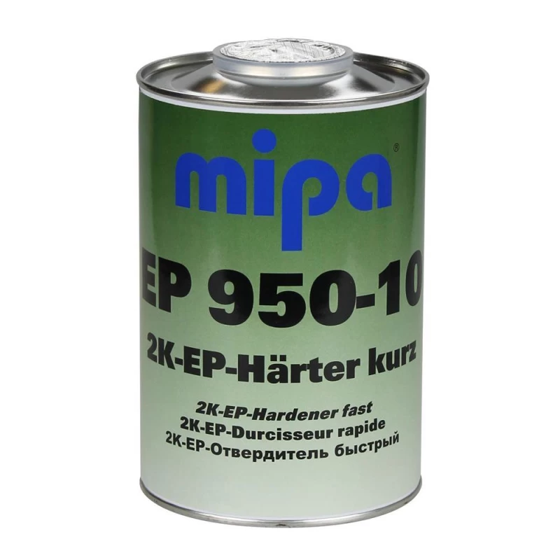 2K-Härter für Mipa 2K-Epoxidharz-Decklacke und 2K-Epoxidharz-Grundierungen mit beschleunigter An- und Durchtrocknung. Zum Einsatz bei Temperaturen von 10 – 15 °C oder zur Verkürzung der Trockenzeit um ca. 20 % im Vergleich zu EP 950-25.