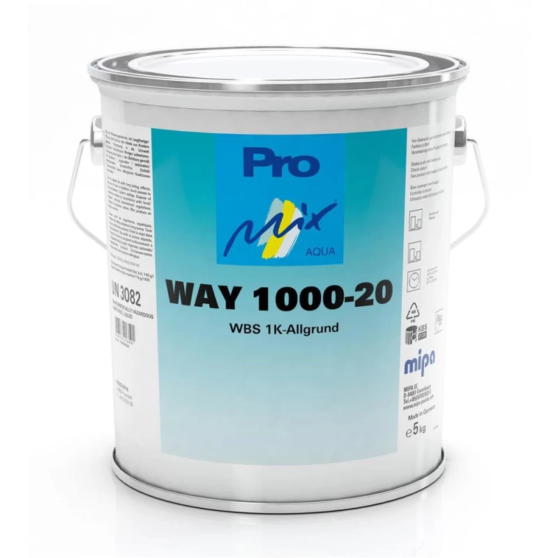 Mipa WBS 1K-Allgrund WAY1000-20 ist ein wasserverdünnbarer, chromatfreier 1K-Zinkphosphatgrund für Eisen, Stahl, Zink und Aluminium. Verarbeitung durch streichen, spritzen, rollen.