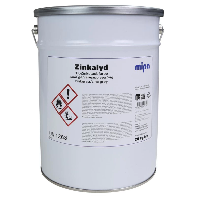 Mipa Zinkalyd ist eine schnelltrocknende Einkomponenten-Zinkstaubfarbe für Korrosionsschutzsysteme mit hoher Schutzwirkung für Eisen- und Stahluntergründe.