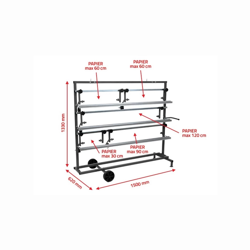 Das Abdeckpapier Abrollgerät kann bis zu 5 Rollen Abdeckpapier oder