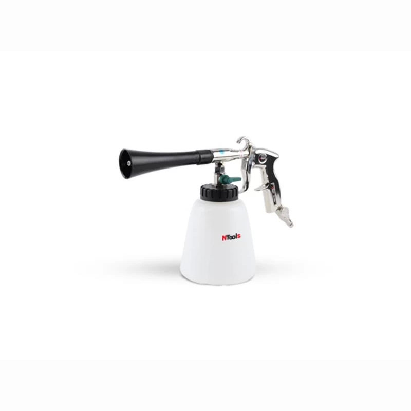 Mithilfe der Druckluft erzeugt die Pistole einen Nebel, der auf die zu reinigenden Teile aufzutragen sei. Die Mengenregelung erlaubt laufende Anpassung der Dosierung. NTools TG 1000 verbraucht möglichst geringe Mengen an Reinigungsmittel und reduziert die Befeuchtung von zu reinigenden Oberflächen für deren schnellere Trocknung.