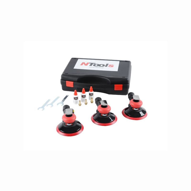 1 Exzenterschleifer (Hub nach Wahl), Werkzeug, ÖL PNT30 und Anschlußnippel + Koffer (nur bei 3er-Set)