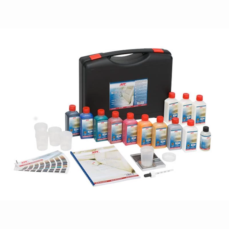 NTW Farbe ist ein Set von Wasserlacken von hervorragender Elastizität und Haftfähigkeit für Oberfläche aus Leder, Vinyl und Kunststoffen, die in Autoindustrie verwendet werden.